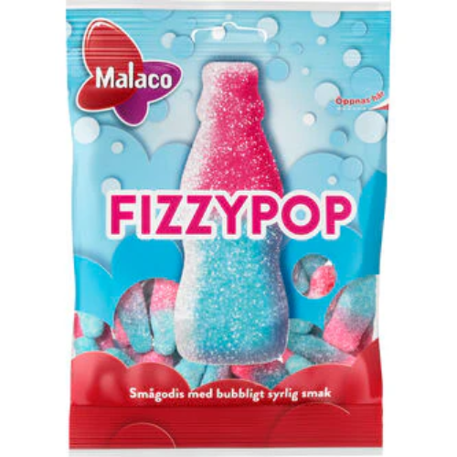 Malaco Fizzypop 80g delivers fizzy, fruity candy with a tangy kick and fun chewy texture.