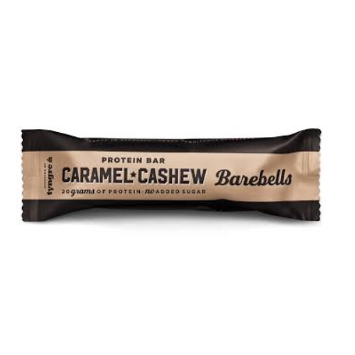 Smooth caramel-flavored protein bar with crunchy cashew pieces.