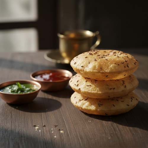 Vamaji Jeera Puri—crisp, flavorful Indian snack infused with cumin seeds, perfect for tea-time or snacking.