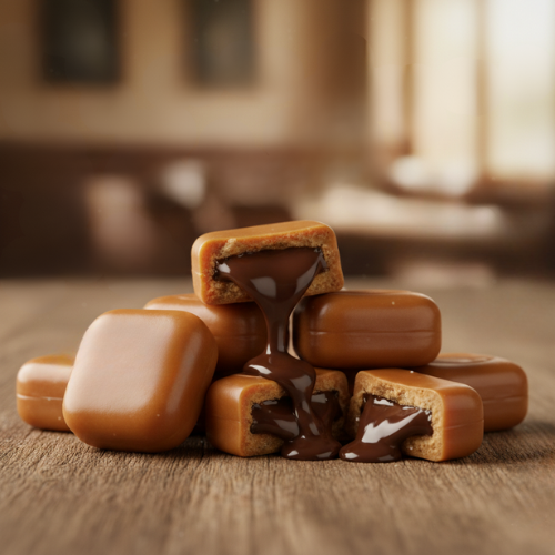 Rich, creamy soft toffees filled with smooth chocolate, offering a perfectly balanced, indulgent caramel delight.