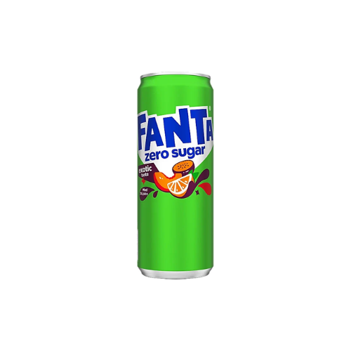 Fanta Zero Sugar Exotic 330ml – A vibrant, tropical fruit-flavored soda with zero sugar and a refreshingly bold exotic twist.