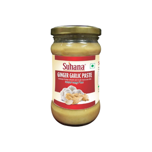 Suhana Ginger Garlic Paste 300gm – Fresh and aromatic ginger-garlic paste, perfect for adding rich flavor to curries, marinades, and stir-fries.